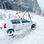 Mit insgesamt 9 Einsatzkräften und den Fahrzeugen KRFS, SRF Mariazell sowie dem HLF Gollrad wurde der PKW mithilfe des Hebekrans sicher auf die Straße gehoben.