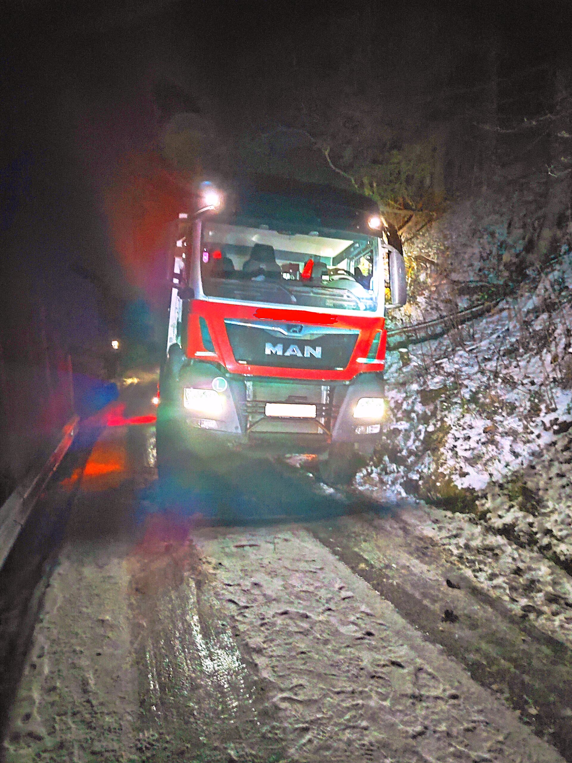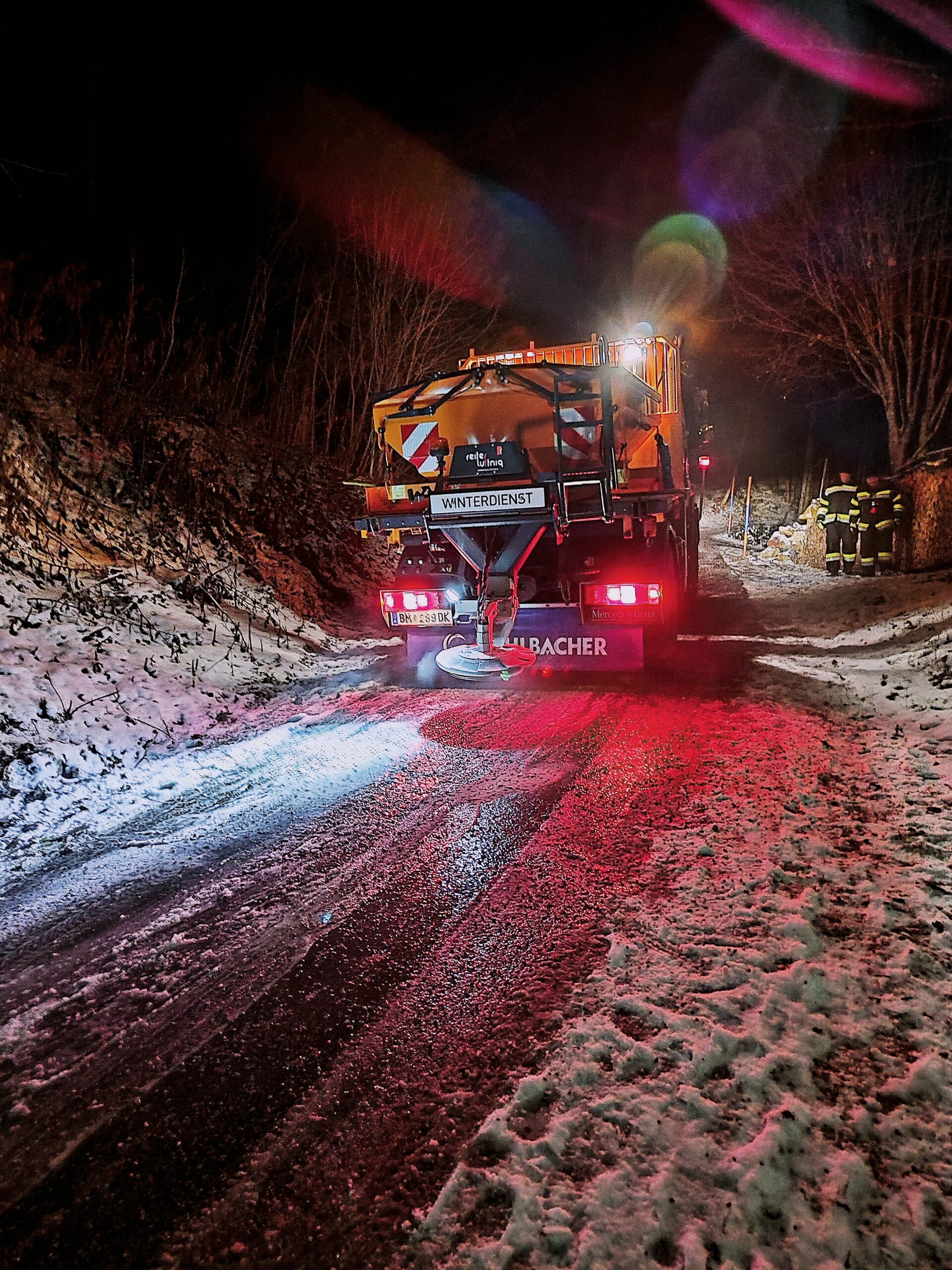 Am Donnerstagabend kam es um 22:02 Uhr im Knappengraben bei Gollrad zu einer LKW-Bergung. Ein Lastkraftwagen war aufgrund von Glätte ins Rutschen geraten und im Straßengraben zum Stillstand gekommen. Die Einsatzkräfte streuten mit dem Unimog der Stadtgemeinde Mariazell großflächig Streusalz, um die Fahrbahn zu sichern und dem LKW ausreichend Halt für die Weiterfahrt zu ermöglichen. Nachdem die Straße wieder befahrbar war, konnte der Fahrer das Fahrzeug selbstständig aus dem Graben manövrieren und die Fahrt fortsetzen. Im Einsatz standen insgesamt acht Mitglieder der Feuerwehr Mariazell mit dem KRFS Mariazell und dem SRF Mariazell, die Feuerwehr Gollrad mit HLF und drei Einsatzkräften sowie der Bauhof Mariazell.